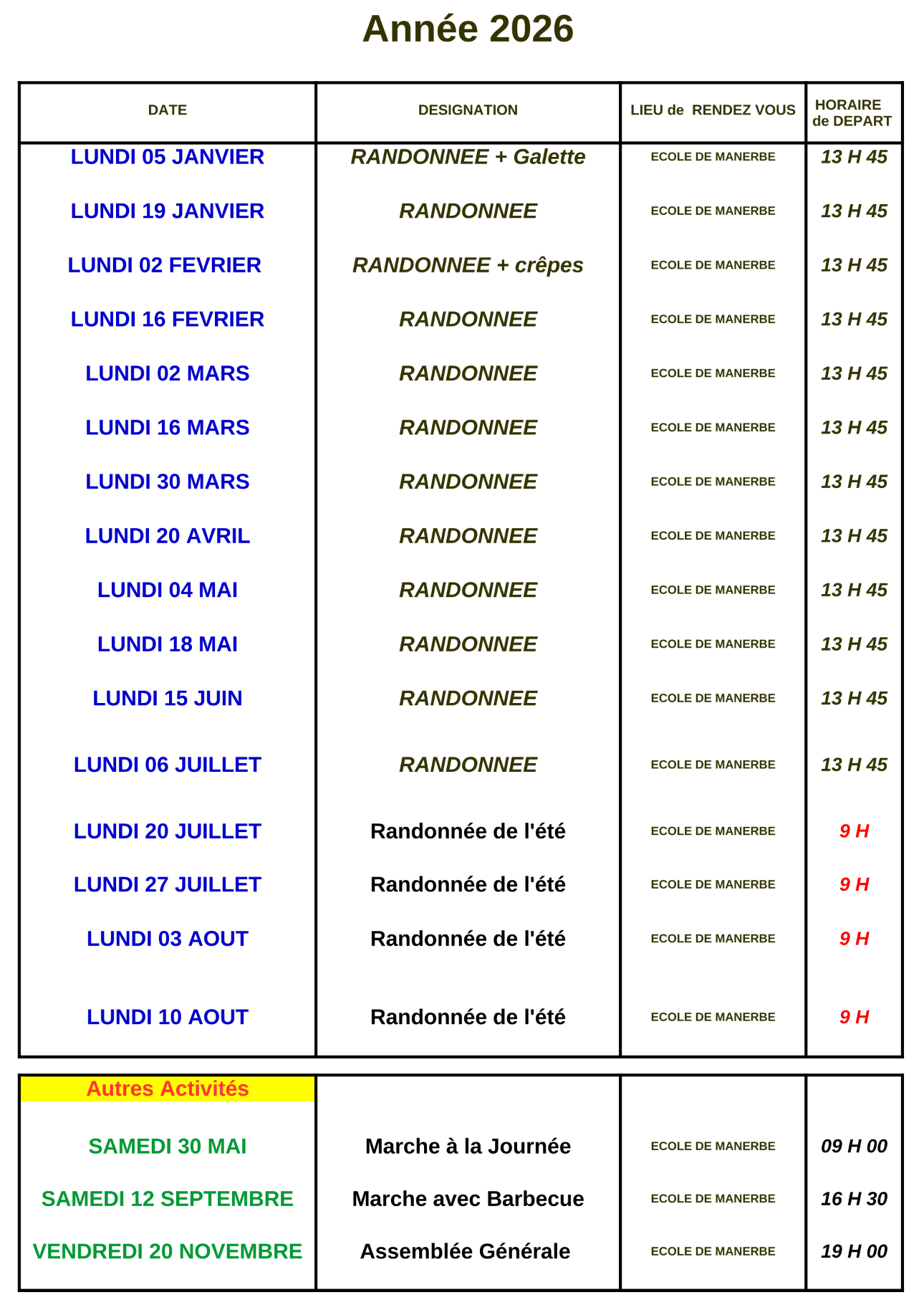 La balade manerboise a été créée à la fin de l’année 2000. Son but premier était d’éviter que les chemins ne soient vendus et disparaissent. Les premiers membres de l’association se sont alors activés à nettoyer les chemins et à rouvrir ceux qui s’étaient refermés. Pour les faire connaître, des manifestations pédestres ou cyclistes ont été organisées. D’autres activités ont pris la suite comme des découvertes de la flore, des parcours manerbois ou alentour et encore des voyages organisés à la journée. La balade manerboise est toujours un moment de convivialité et de partage. Elle vous invite à la rejoindre pour que vivent nos chemins communaux.
